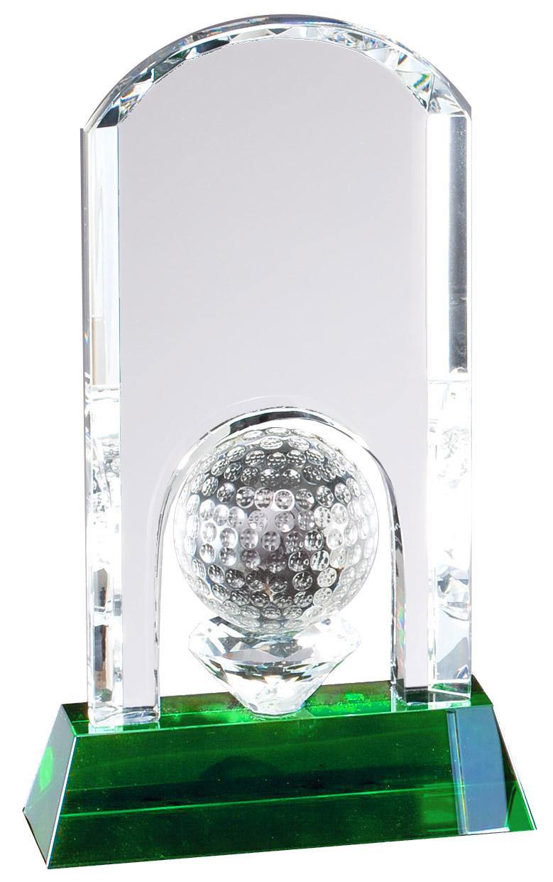 9 inch crystal award with golf ball – CRY308