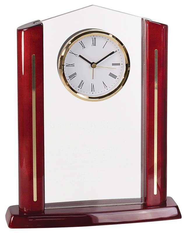 10.5 inch acrylic award with piano finished rosewood and clock – CAR59