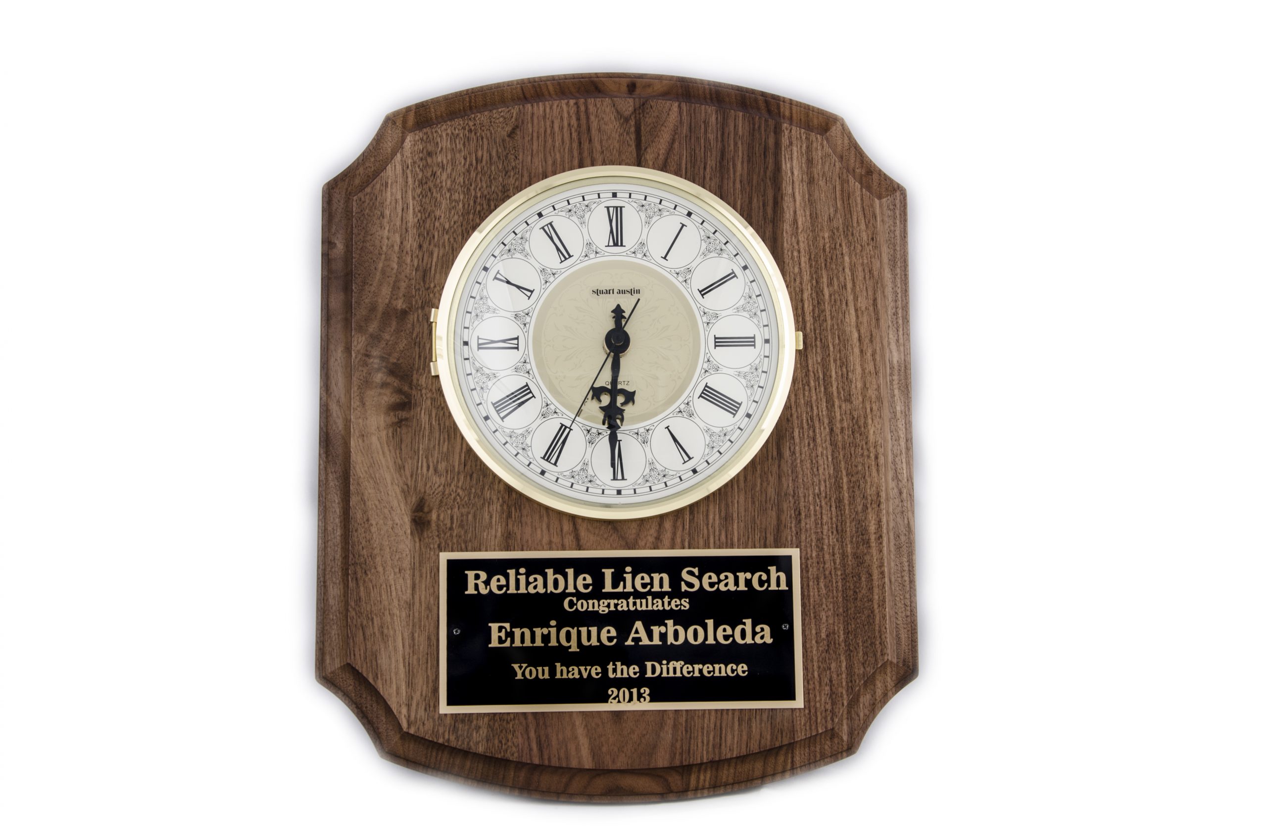 10.5'' x 13'' walnut wall clock with ivory dial and three-hand movement quantity
