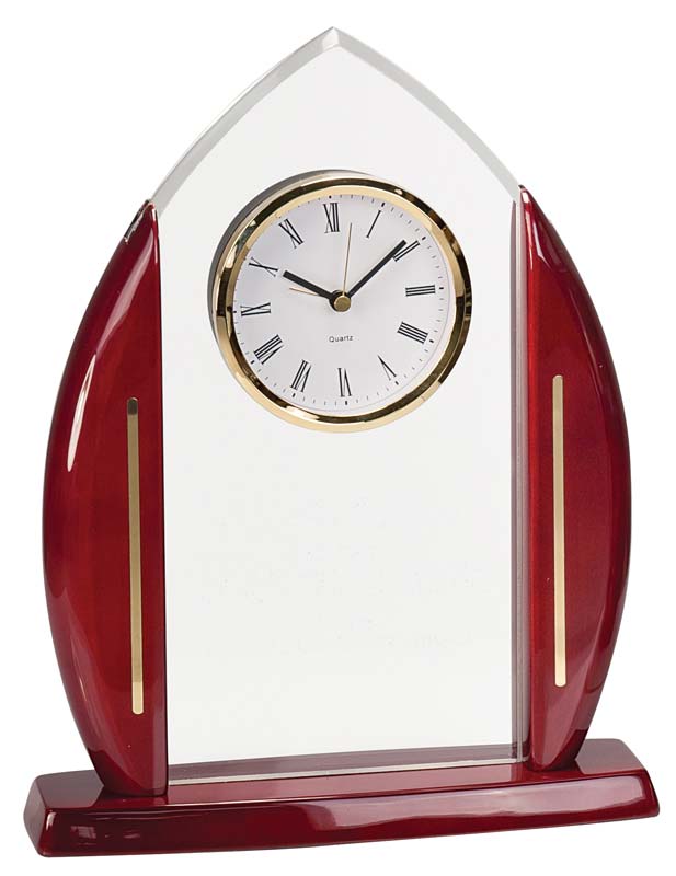 11 inch acrylic award with piano finished rosewood and clock – CAA39