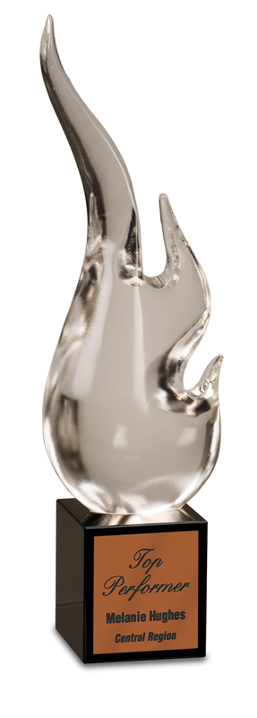 12 inch crystal flame award on black base quantity