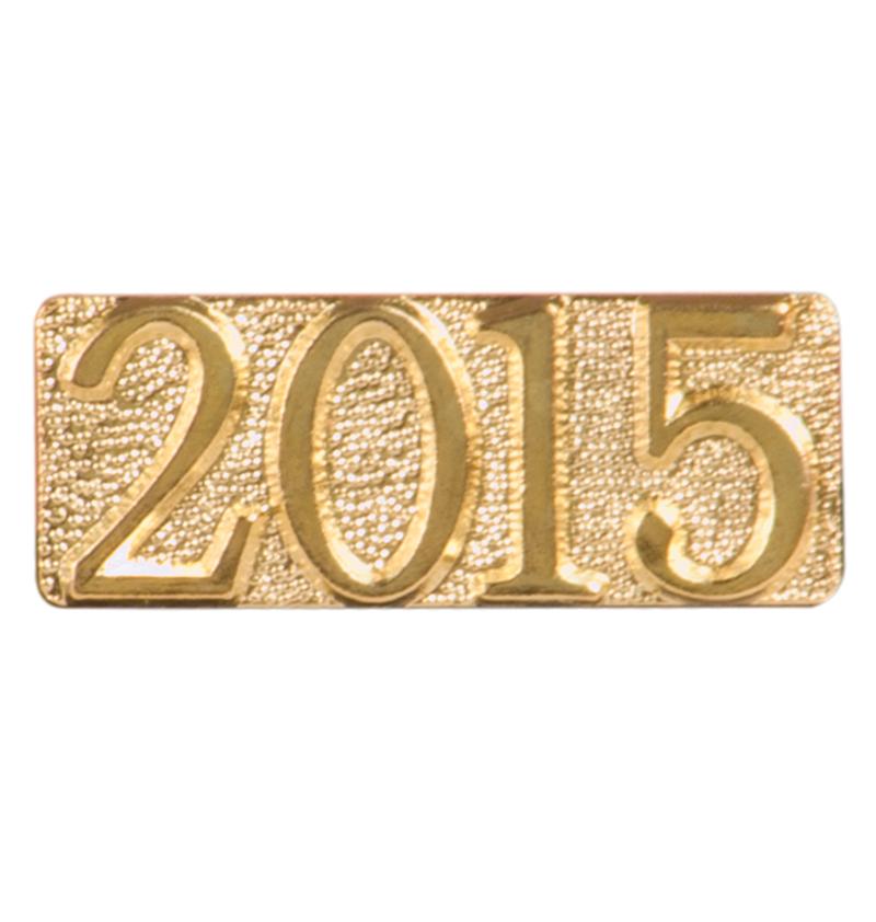 “2015” pin with bright gold finish and butterfly clutch back. Pin length is 0.5” – CHEN2015