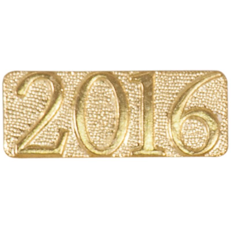 "2016" pin with bright gold finish and butterfly clutch back. Pin length is 0.5'' quantity