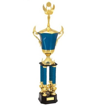 42 inch blue and gold two-tier trophy with columns and cup – 416