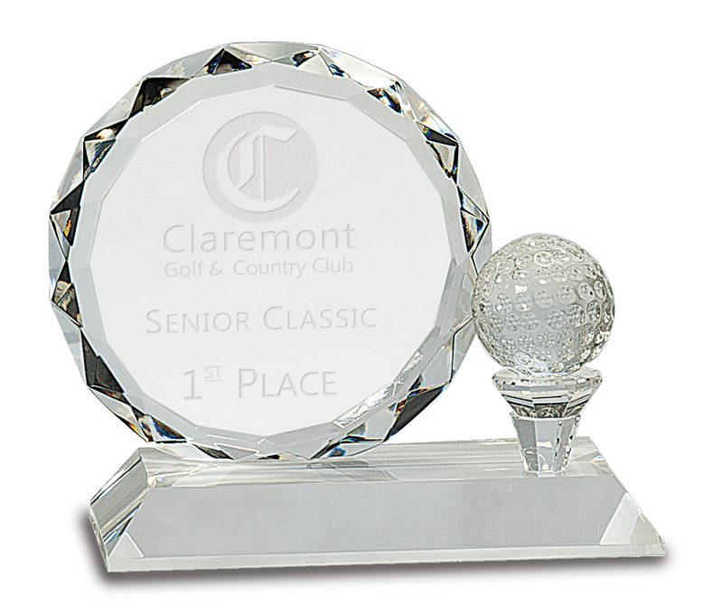 6'' x 5.25'' crystal golf ball and tee with faceted circle quantity
