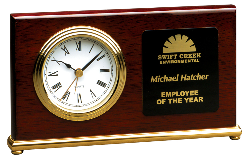 7.5'' x 7'' piano finished rosewood horizontal desk clock quantity