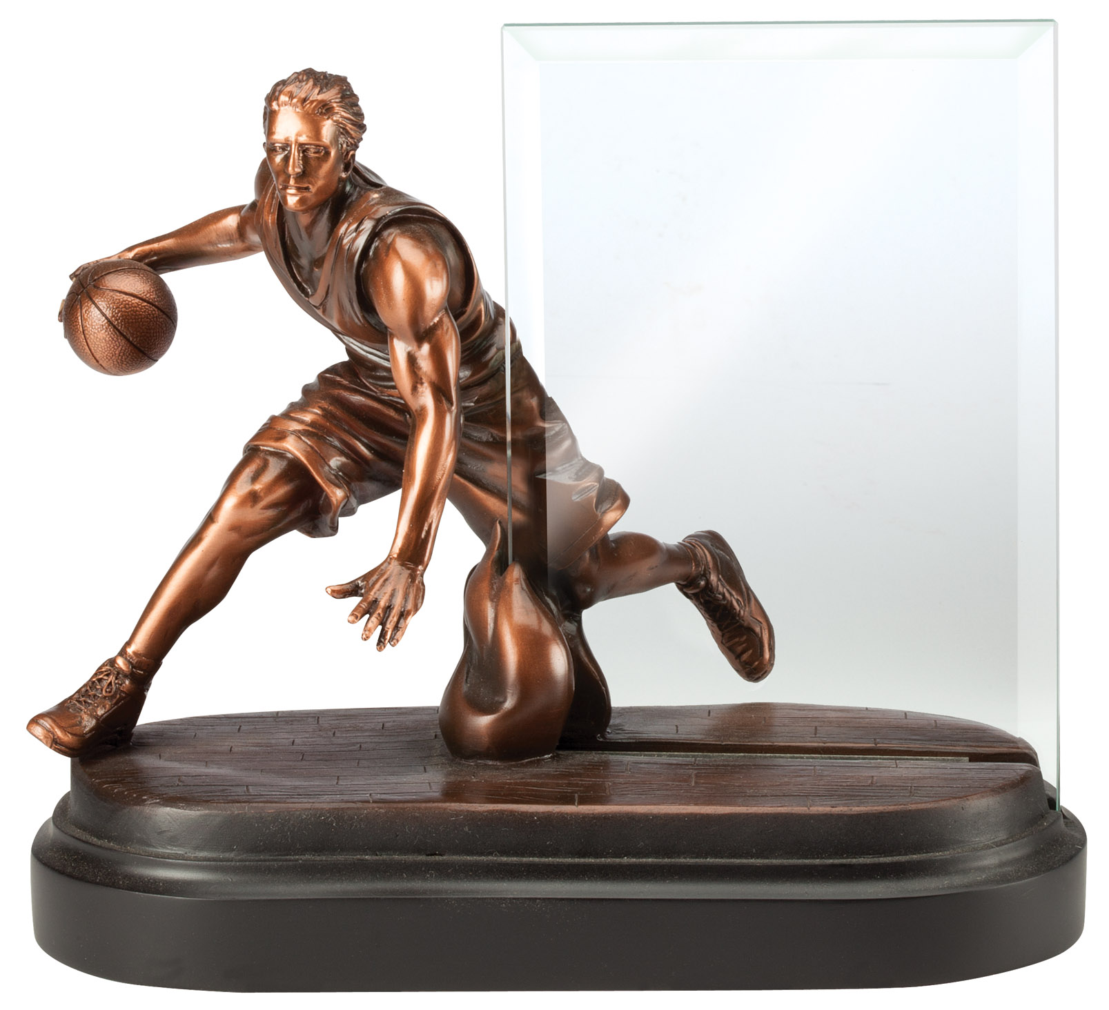 7 inch basketball sculpture with 4'' x 6'' glass quantity