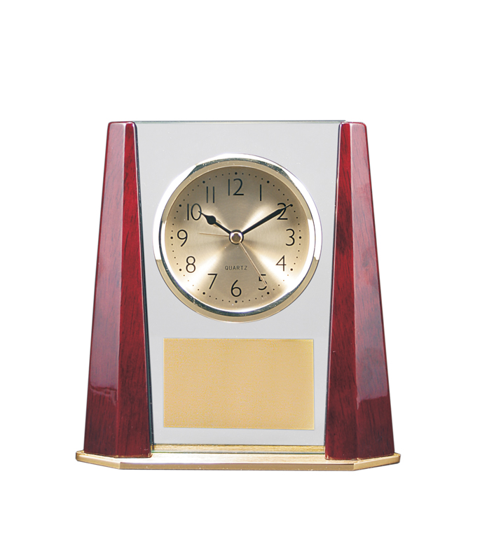 7” x 7.5” glass clock with rosewood piano finished columns – T138