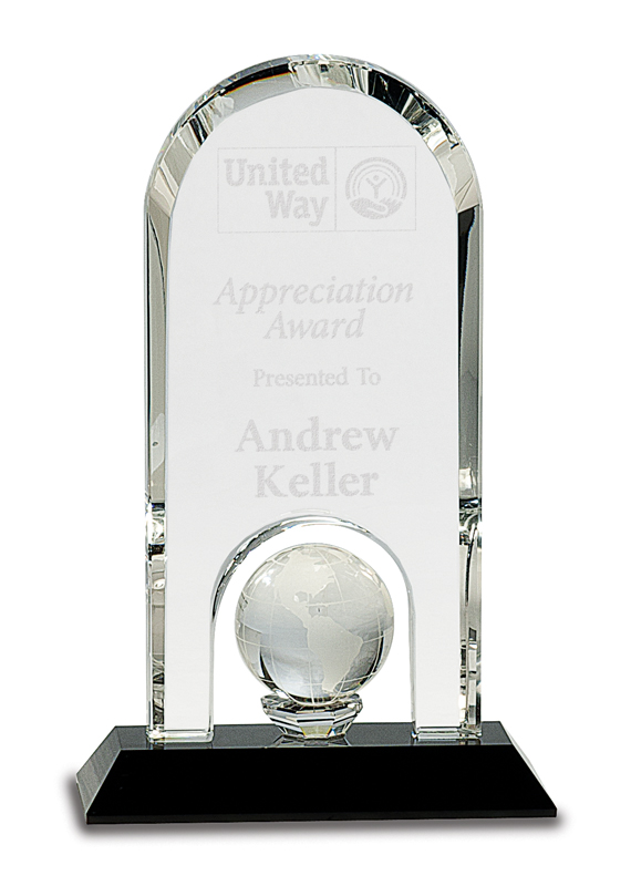 Crystal globe in hand award – CRY75