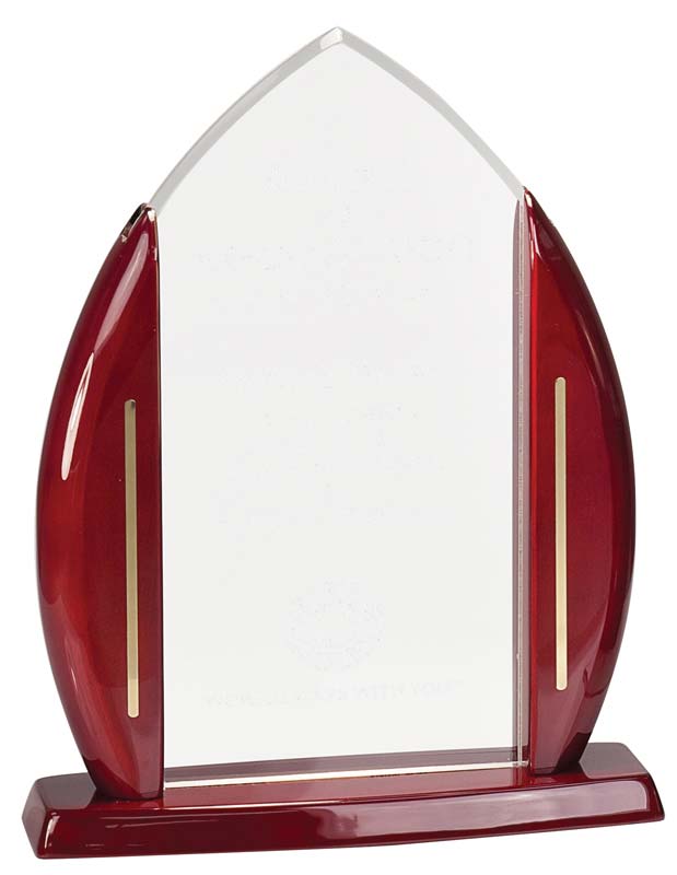 Arch cathedral acrylic award with piano finished rosewood – CAA31