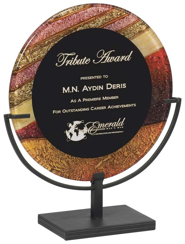 Gold and red art acrylic mounted on iron stand – Red PLX Series