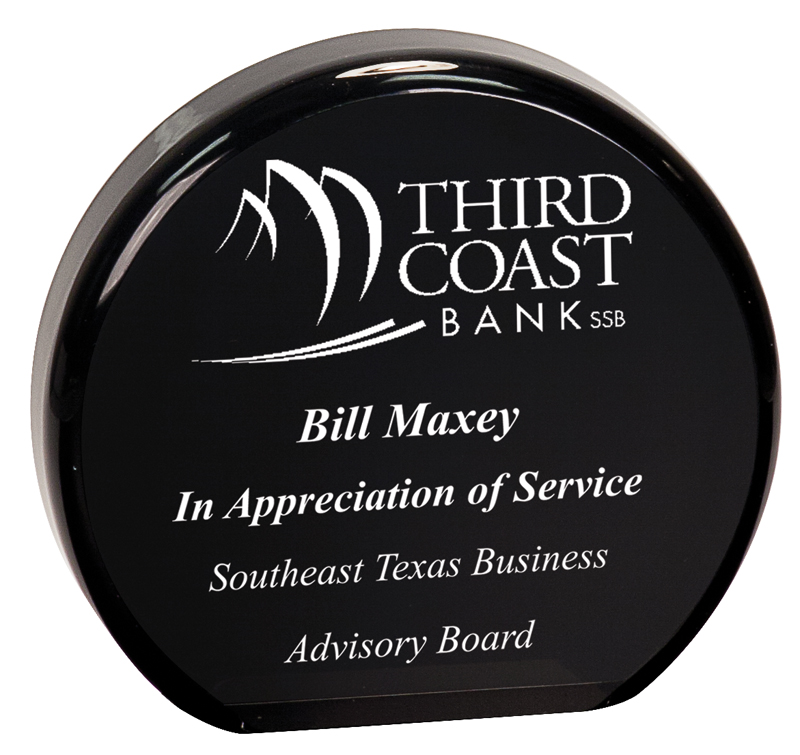 10.5 inch acrylic award with piano finished rosewood and clock – CAR59