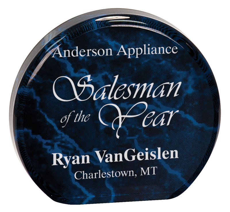 Blue marble round acrylic award quantity