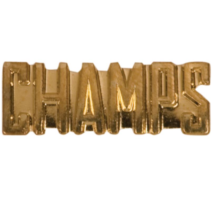 "Champs" pin with bright gold finish and butterfly clutch back. Pin length is 0.5'' quantity