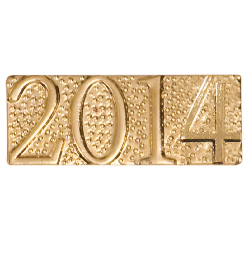 “2014” pin with bright gold finish and butterfly clutch back. Pin length is 0.5”
