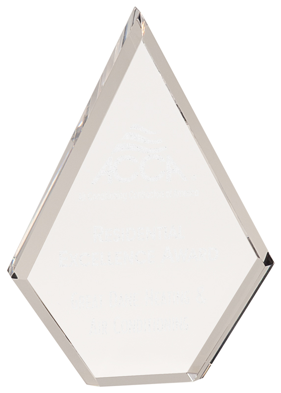 Floating acrylic diamond award with reflective gold base – AFD11GD