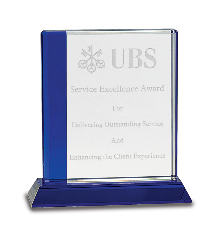Crystal award with blue base and column – CRY534 CRY534S, CRY534M, CRY534L