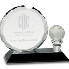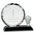Crystal faceted circle and golf ball and tee award on black base – CRY026 CRY026S, CRY026L