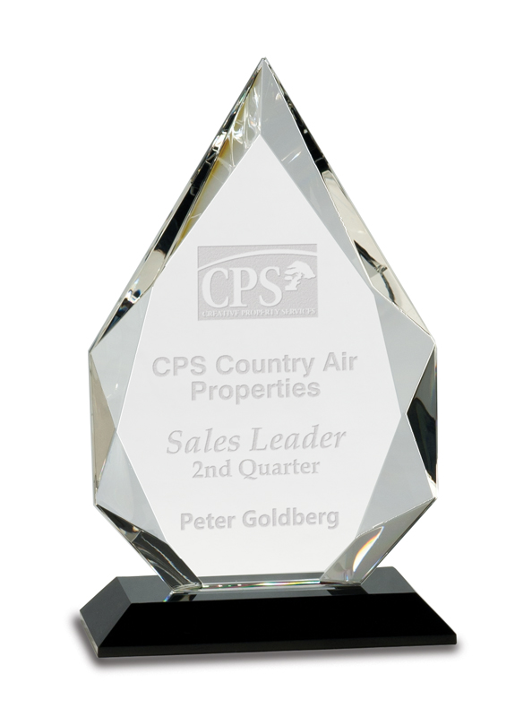 Crystal faceted diamond award with black base – CRY005