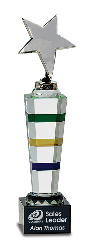 Crystal tri-color star award on black base – CRY165 CRY165M, CRY165L