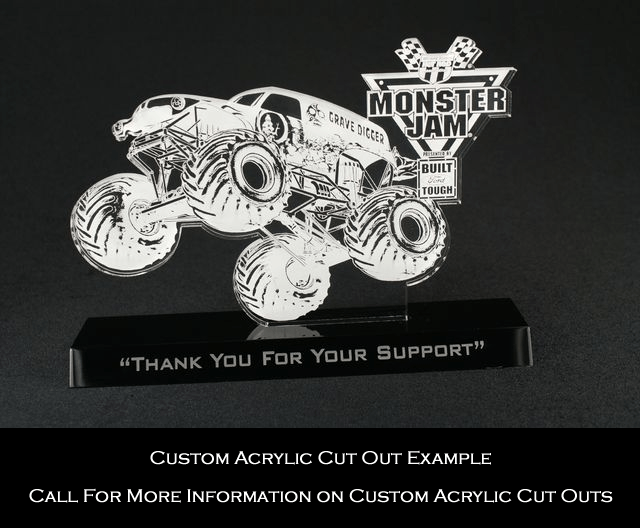 Acrylic, glass, crystal, brass, and marble custom awards available. Minimums apply. Price varies depending on shape and size. Please call store for details and accurate quote.