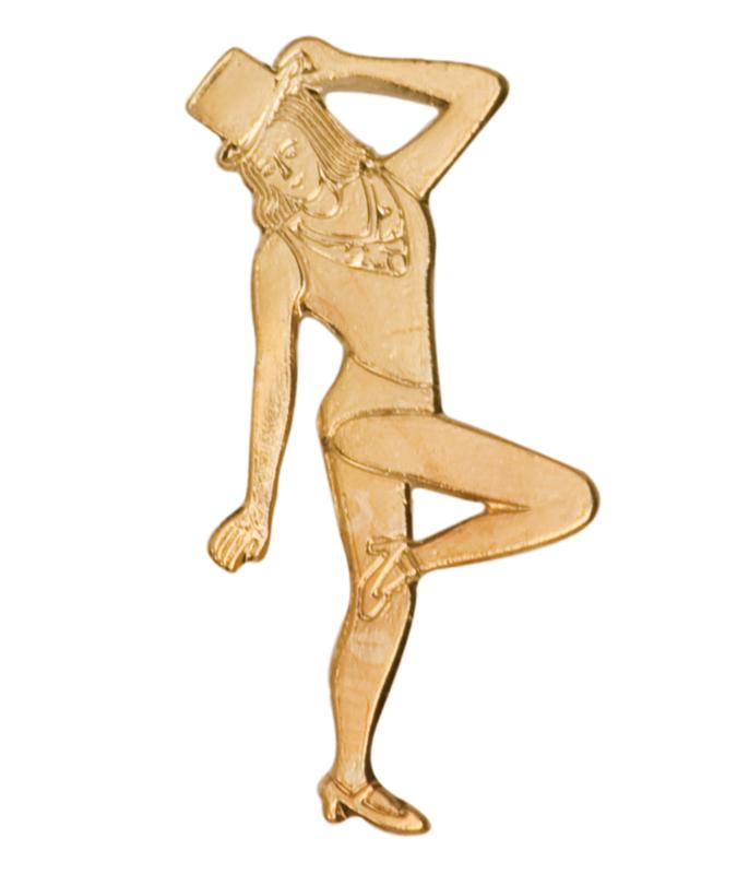 Dance pin with bright gold finish and butterfly clutch back. Pin length is 0.5” – CHEN117