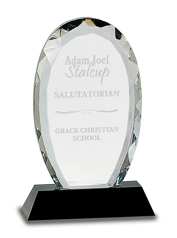 Faceted crystal oval award on black base – CRY019 CRY019S, CRY019L