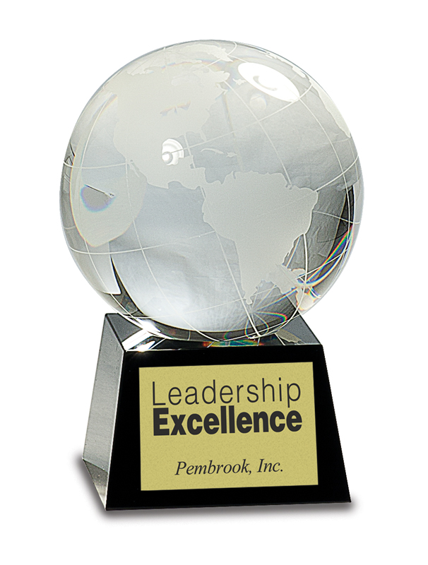 Frosted crystal globe award on black base – CRY037 CRY037, CRY038