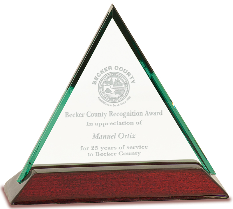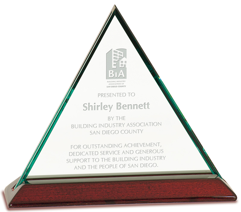 Jaded glass triangle on rosewood piano finished base – GAT5JP
