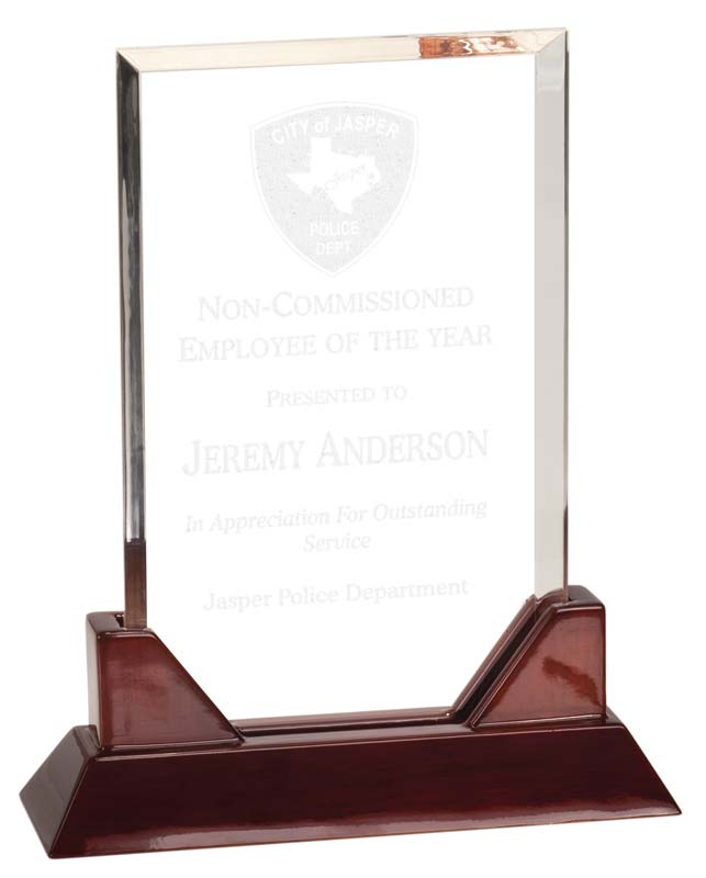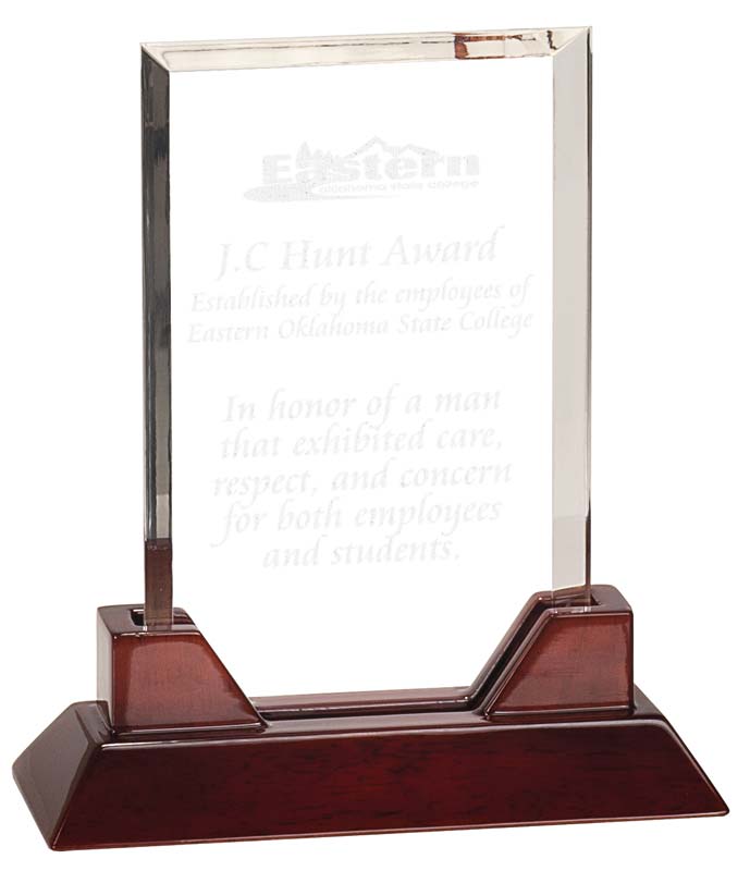 Rectangle acrylic award on piano finished rosewood base – PTA21