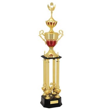 Red and gold two-tier trophy with columns and cup – 381-RED 8200383-RED, 8200382-RED, 8200381-RED