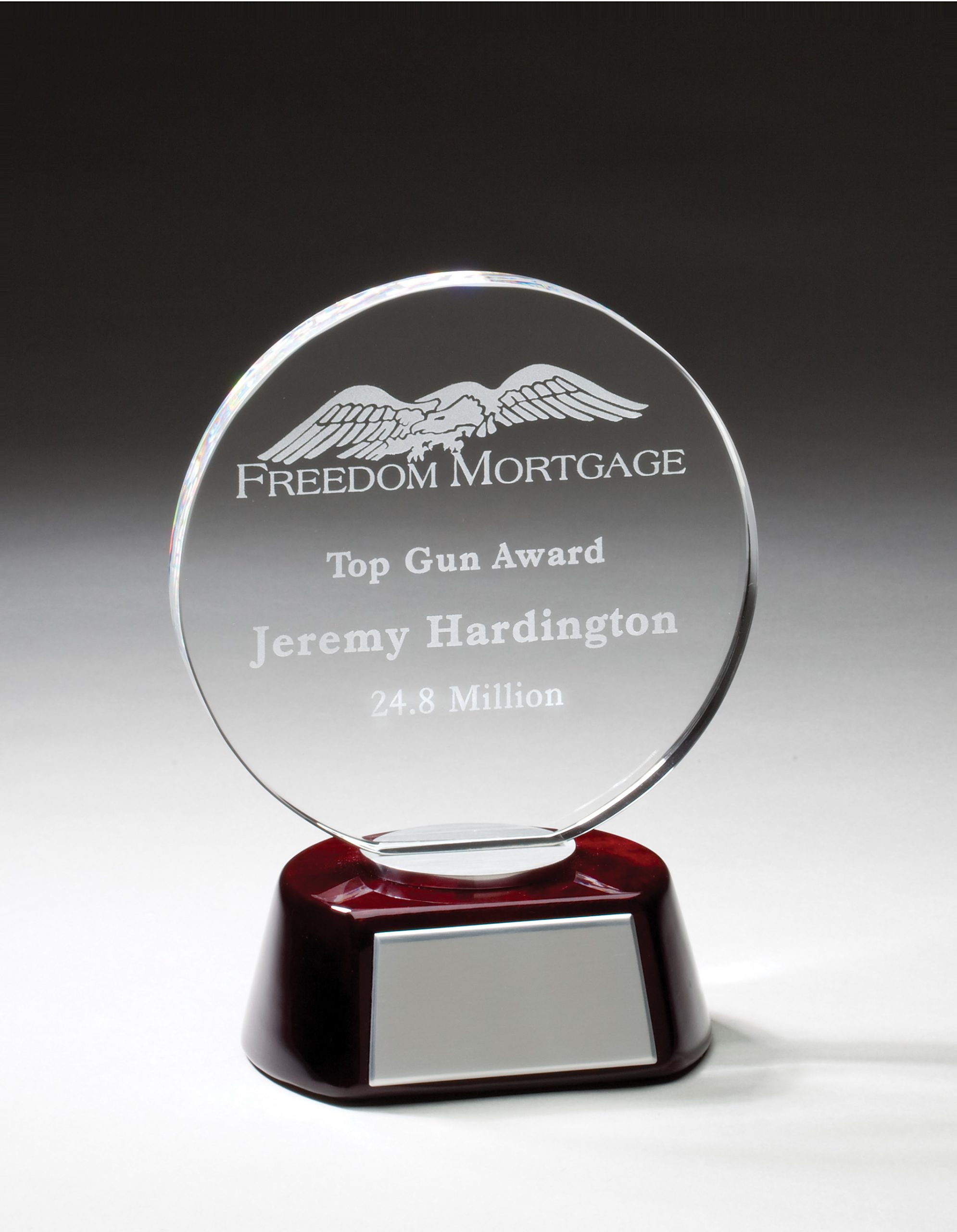 Round crystal award on rosewood base – CRY717 CRY717, CRY718, CRY719