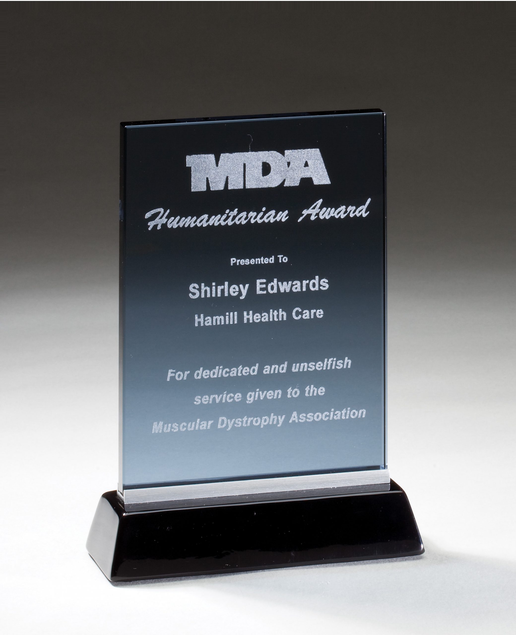 Smoked glass award mounted on a black base with brushed aluminum accents – GK11