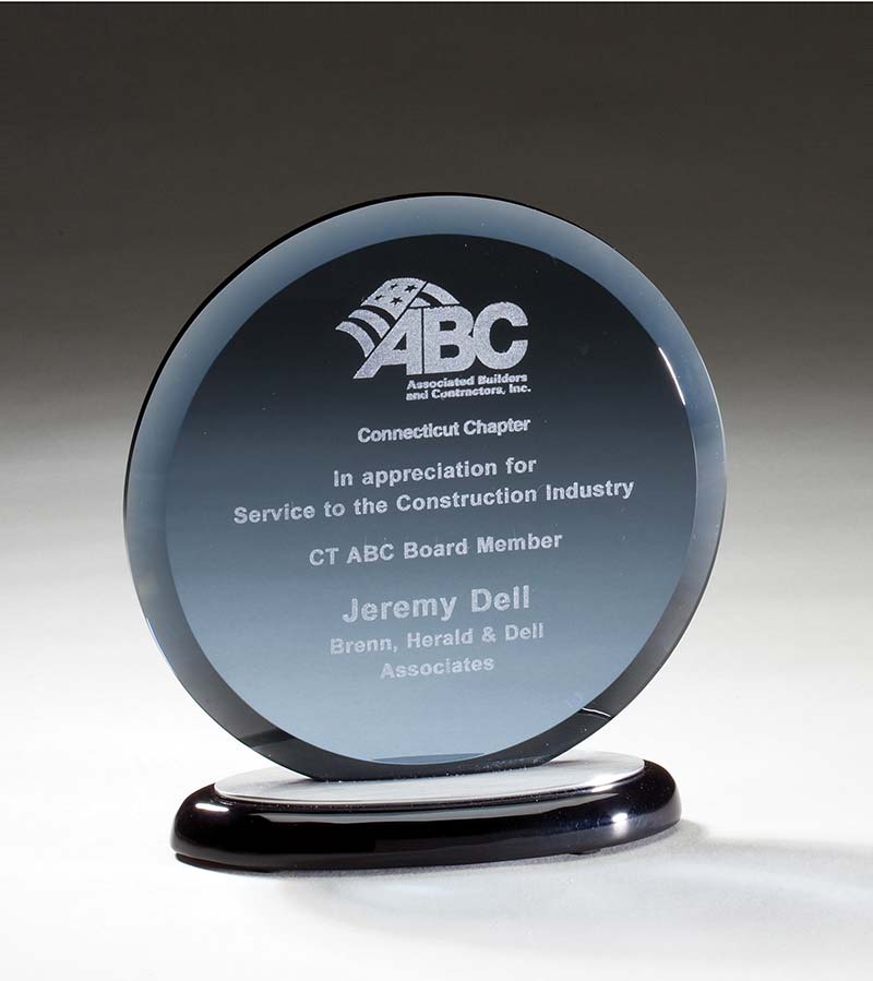 Smoked glass award mounted on black base with brushed aluminum accents – GK51 GK51, GK52, GK53
