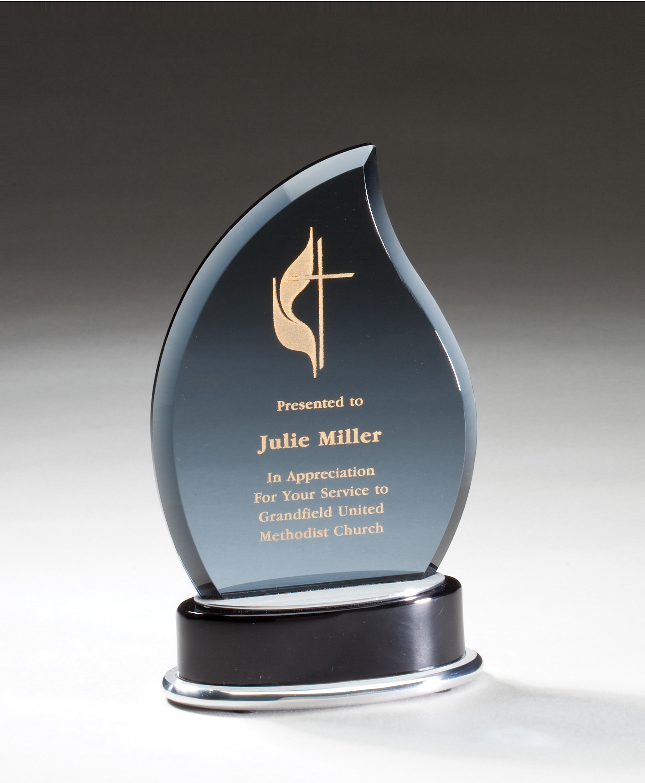 Smoked glass flame mounted on black base with brushed aluminum accents – GK61
