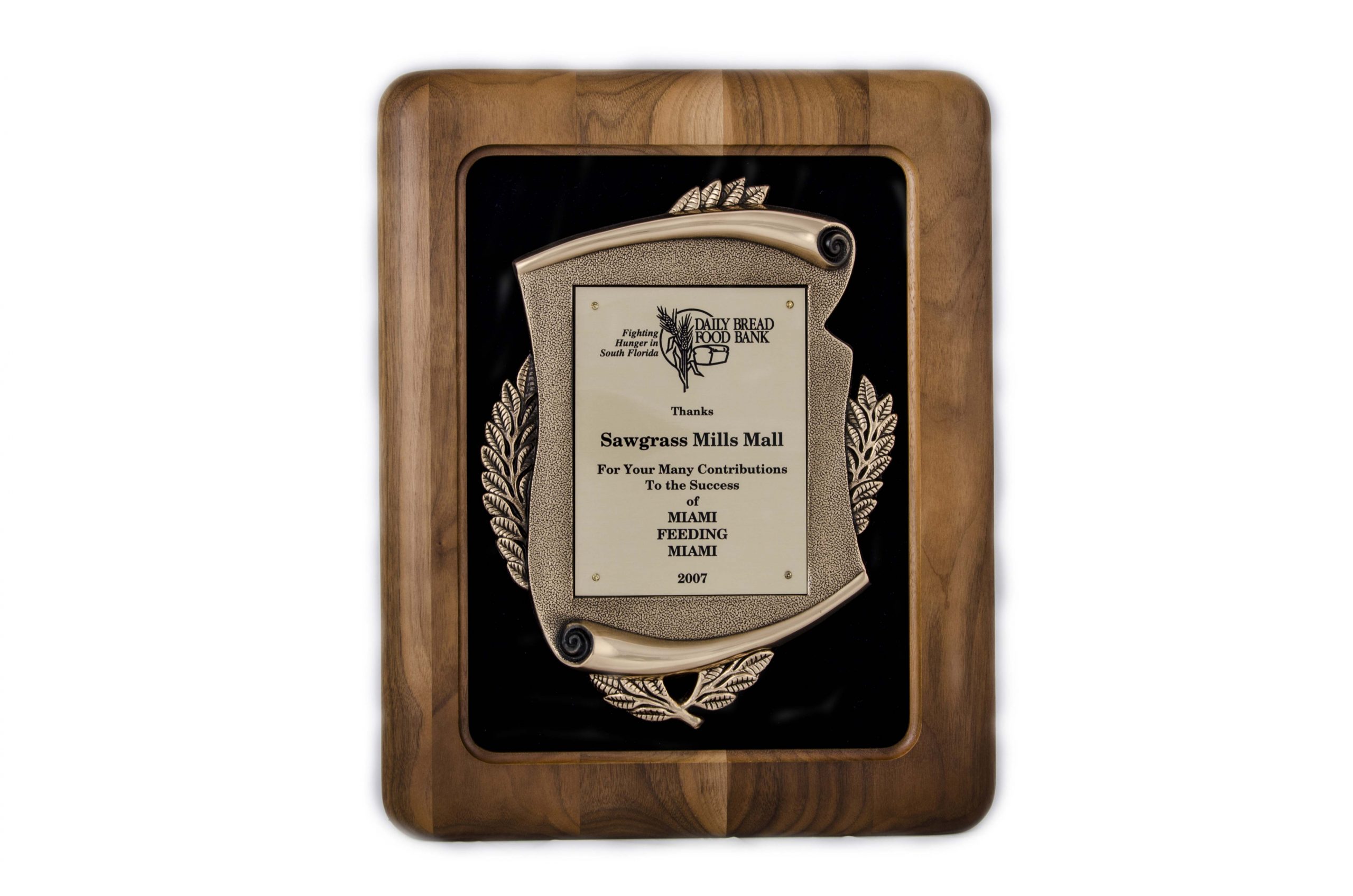 Walnut frame plaque with gold scroll casting on black velour backdrop – SPCP1 SPCP1A, SPCP1B
