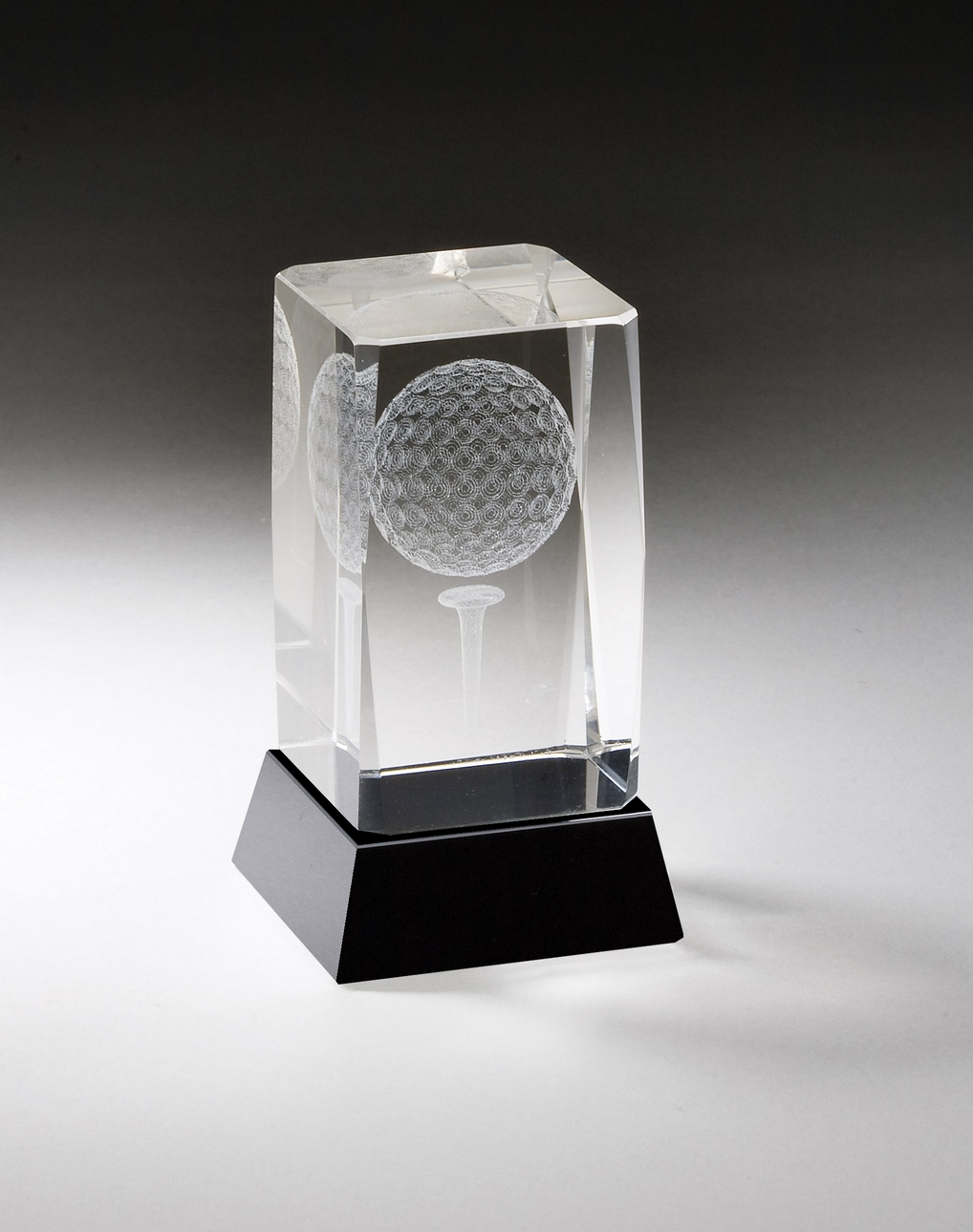 4” x 7.75” Crystal golf ball and columns on black base – CRY337