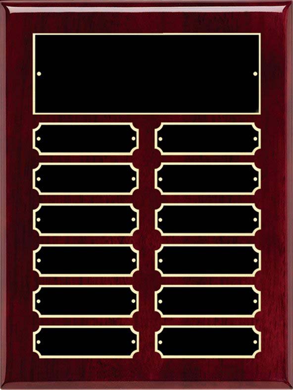 10.5” x 13” rosewood piano finished perpetual plaque with 18 plates – RPP18