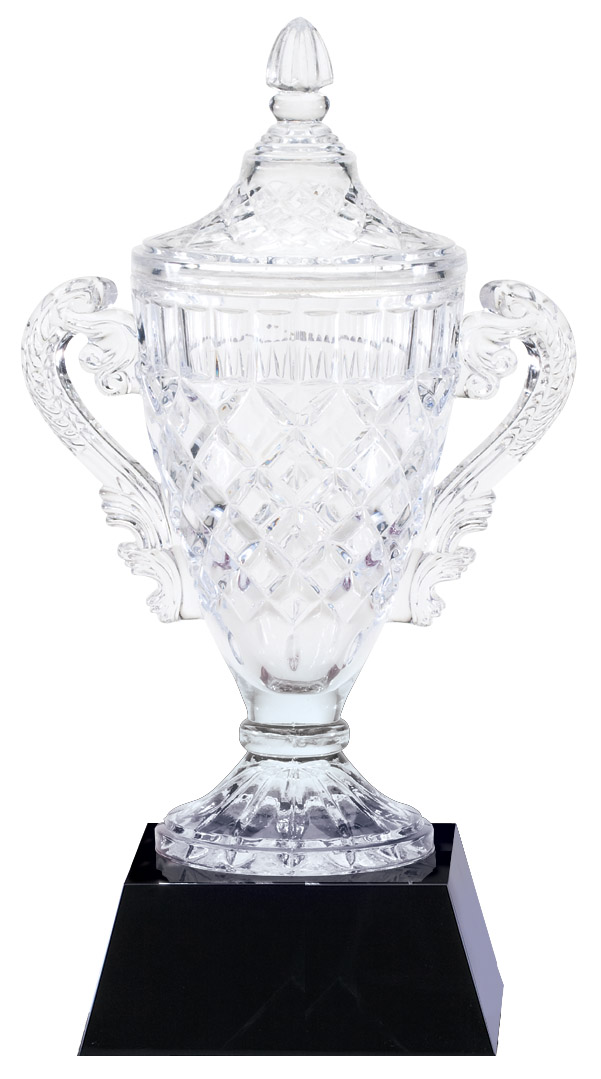 6.5” x 6” crystal cup on black base – CRY324