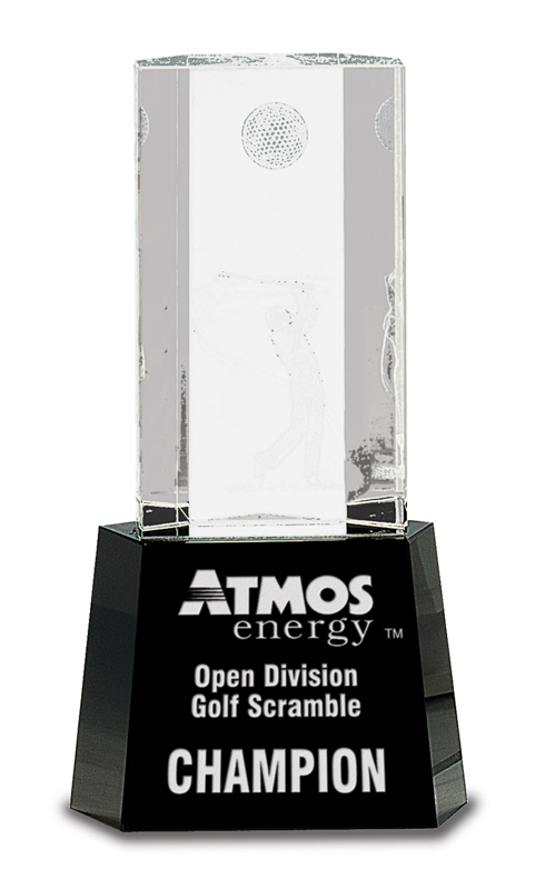 4” x 7.75” Crystal golf ball and columns on black base – CRY337
