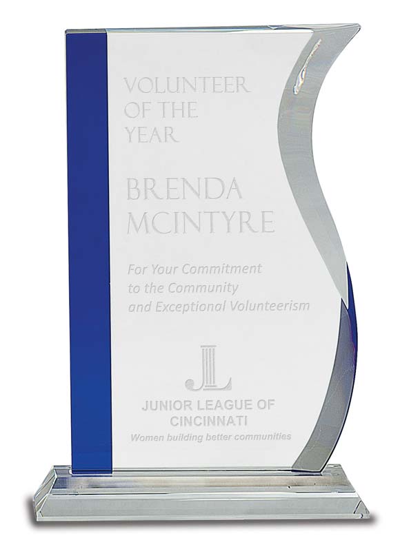 9.5 inch crystal wave award with blue edge – CRY244