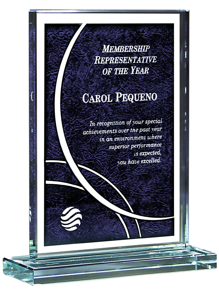 9.25 inch crystal award with blue backdrop – CRY250